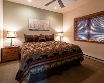 Main level Bedroom with adjoining bathroom, king bed and nice closet space