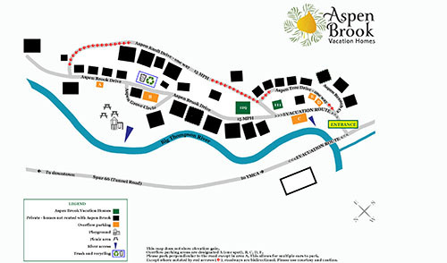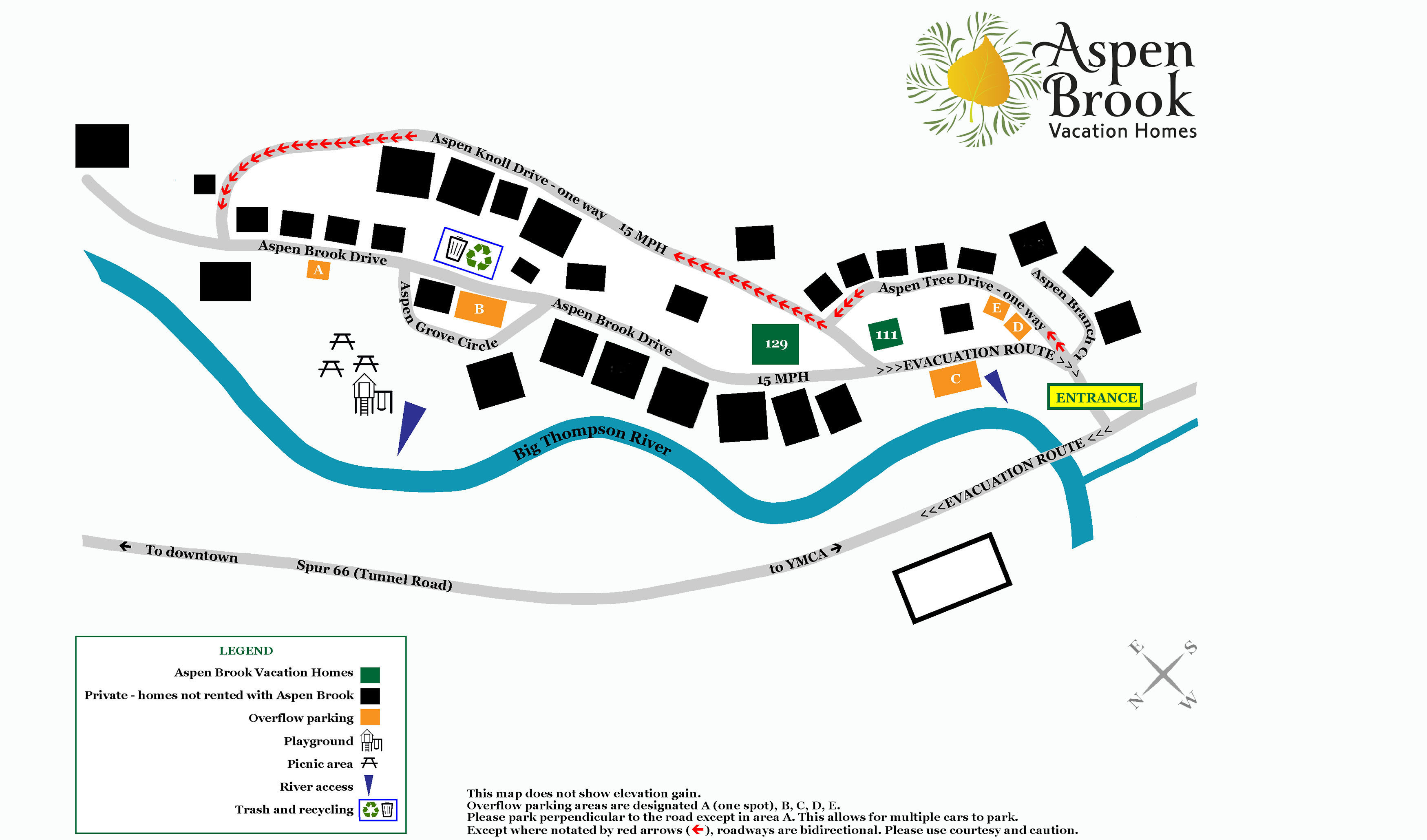 Except where noted by red arrows, roadways are bidirectional. Please use courtesy and caution.